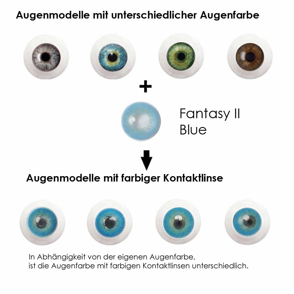 Diese blauen Kontaktlinsen der Fantasy Series II von Elena Bellucci bestechen durch lebhafte Farben. Das Fantasy II Farbmuster besitzt keinen dunklen Ring am Rand der Kontaktlinse. Allerdings besteht das Farbmuster neben der blauen Färbung auch eine dezente bräunliche Schattierung rund um die Pupille.