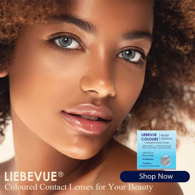 Beauty contact lenses are available from both LIEBEVUE and Elena Bellucci. The design of their colour samples is based on natural eye colours and patterns and should thus enable a particularly natural change in eye colour. In addition to the main colour of the contact lens, some colour samples also have a dark shade around the outside and / or a slight tint around the inside of the colouring. These accent colours help make the colour lens look even more realistic. Some colour samples such as LIEBEVUE Ardor are designed in such a way that they cover up the natural eye colour relatively strongly. Color samples like LIEBEVUE Natural, on the other hand, have no dark accent colours. Without the dark tint, let the natural eye colour shine through a little more. They tend to lead to a merging of the colour of the contact lens and your natural eye colour. With the combination of coloured lenses and your own eye colour, individual, completely new colour nuances are created over and over again. Our colour contact lenses are ideally suited for light and dark eyes. The coloured contact lenses are available in aqua, blue, brown, gay, green, hazel, honey, sapphire and purple. The cosplay coloured lenses are also available in yellow, orange, pink, red, black and white.