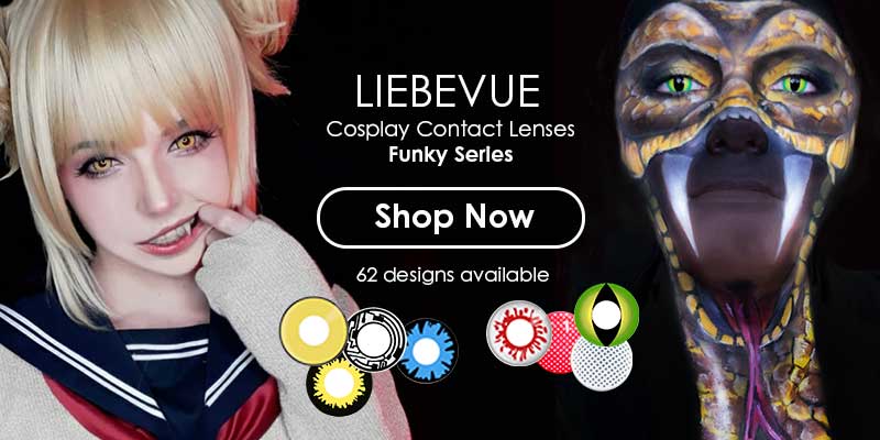 The Cosplay contact lenses (also called costume lenses or motif lenses) from LIEBEVUE include a total of 100 different motifs from 6 series to cover every cosplay or costume need.